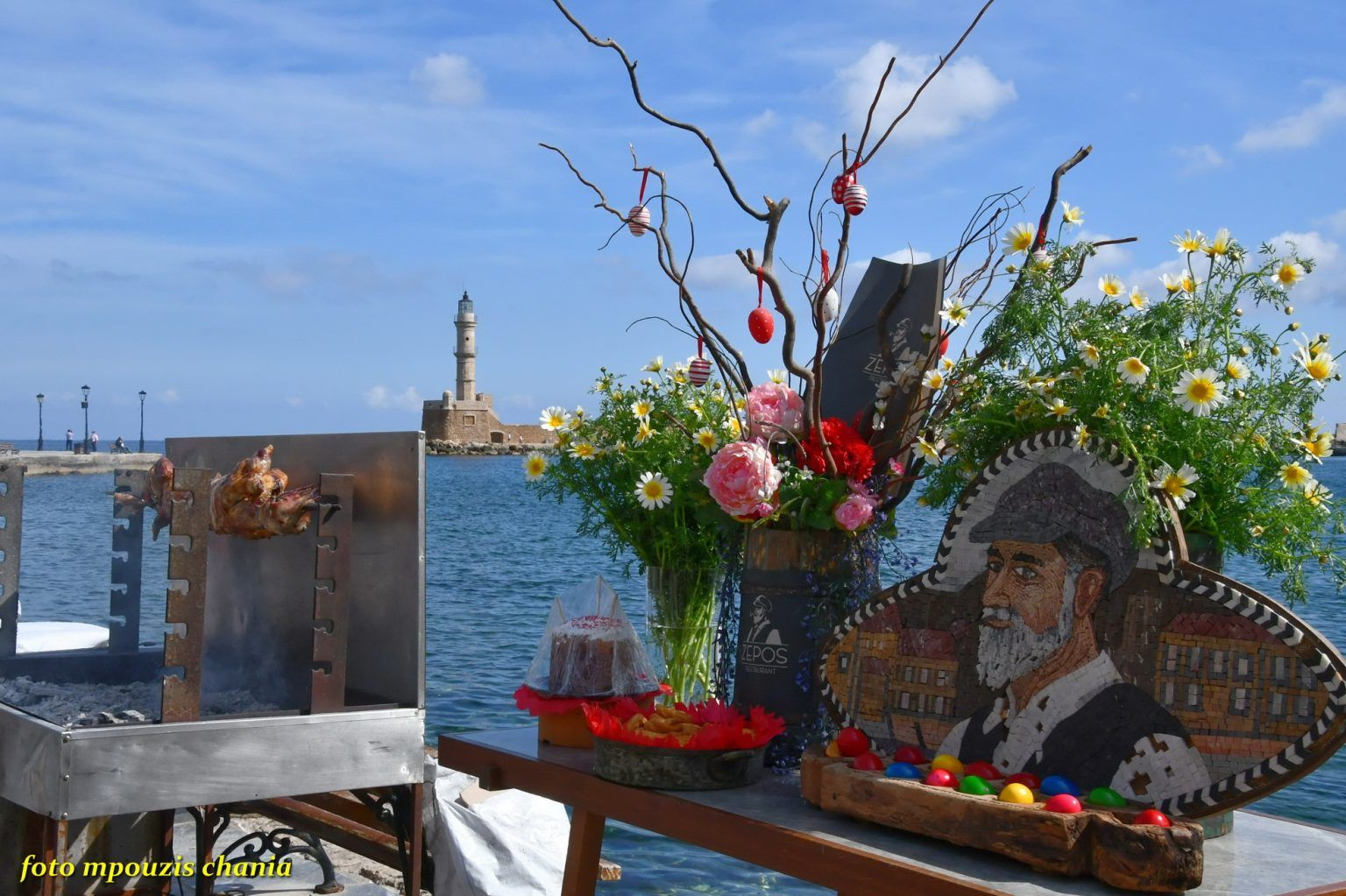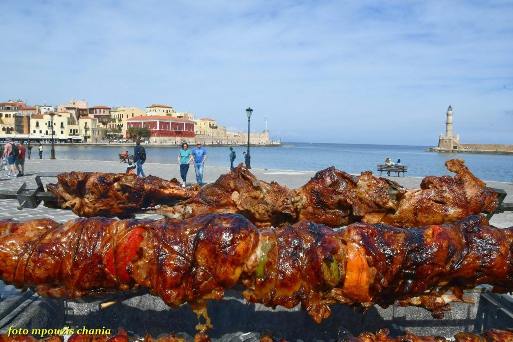 Πάσχα με… σούβλες σήμερα στο ενετικό λιμάνι των Χανίων, όπου οι πολλοί επισκέπτες και οι ντόπιοι απόλαυσαν τον παραδοσιακό οβελία το κοντοσούβλι και το κοκορέτσι με θέα τον φάρο.