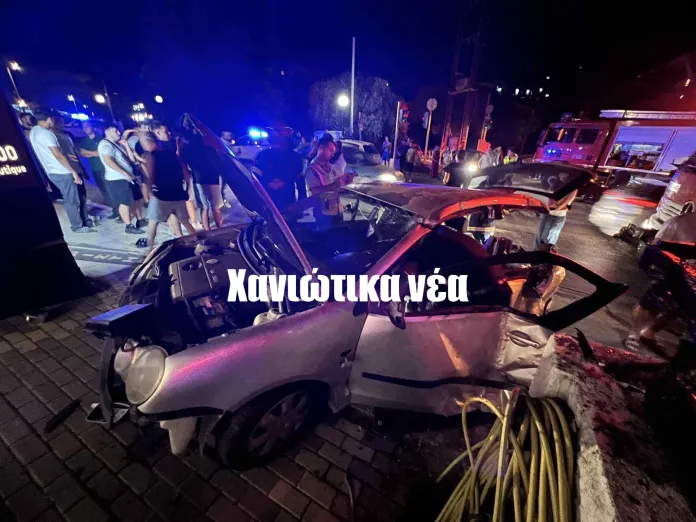 Στο αυτοκίνητο επέβαιναν δύο άνδρες και τρεις γυναίκες, με μια από αυτές, να διακομίζεται στο Νοσοκομείο Χανίων.