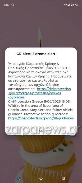 Στα κινητά των κατοίκων ήχησε μήνυμα από το 112 που τους προειδοποιεί να μείνουν σε ετοιμότητα.
