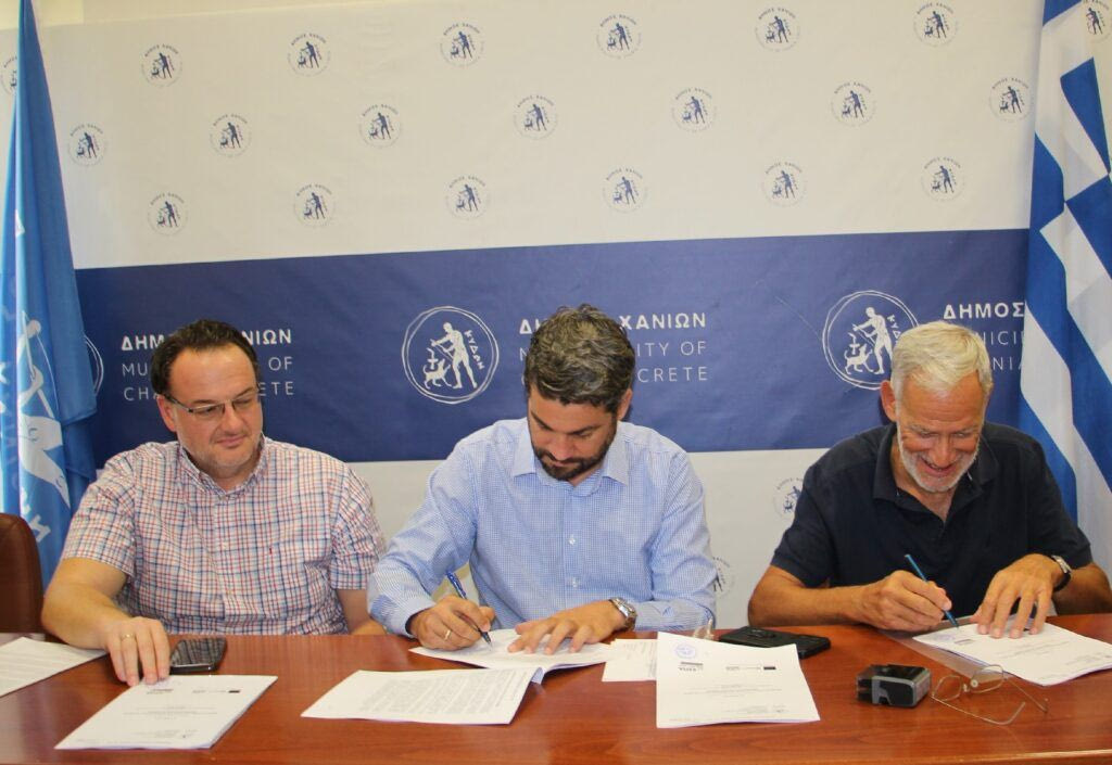 Ο Δήμαρχος Χανίων, Παναγιώτης Σημανδηράκης υπέγραψε την ανάθεση της σύμβασης με τους εκπροσώπους από την ανάδοχο εταιρία, παρουσία του Αντιδημάρχου Τεχνικών Υπηρεσιών (Τ.Υ.), Μιχάλη Καλογριδάκη, του Αντιδημάρχου Πολιτισμού, Γιάννη Γιαννακάκη και στελεχών της Διεύθυνσης Τ.Υ. του Δήμου.