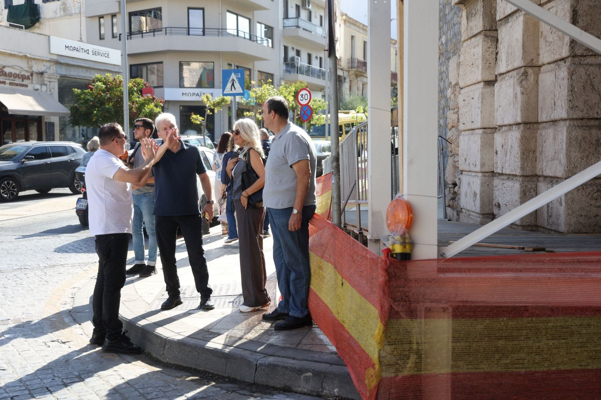 Στην Χανιόπορτα, που από σήμερα είναι ξανά ανοιχτή και για τα οχήματα, βρέθηκε το πρωί της Δευτέρας 7/10 ο Δήμαρχος Ηρακλείου Αλέξης Καλοκαιρινός, μαζί με τους Προέδρους της 1ης και 3ης Δημοτικής Κοινότητας, Θεοδοσία Αγγελιδάκη και Μιχάλη Βάμβουκα αντίστοιχα, καθώς και τον επιβλέποντα μηχανικό του έργου Γιώργο Ταβερναράκη.