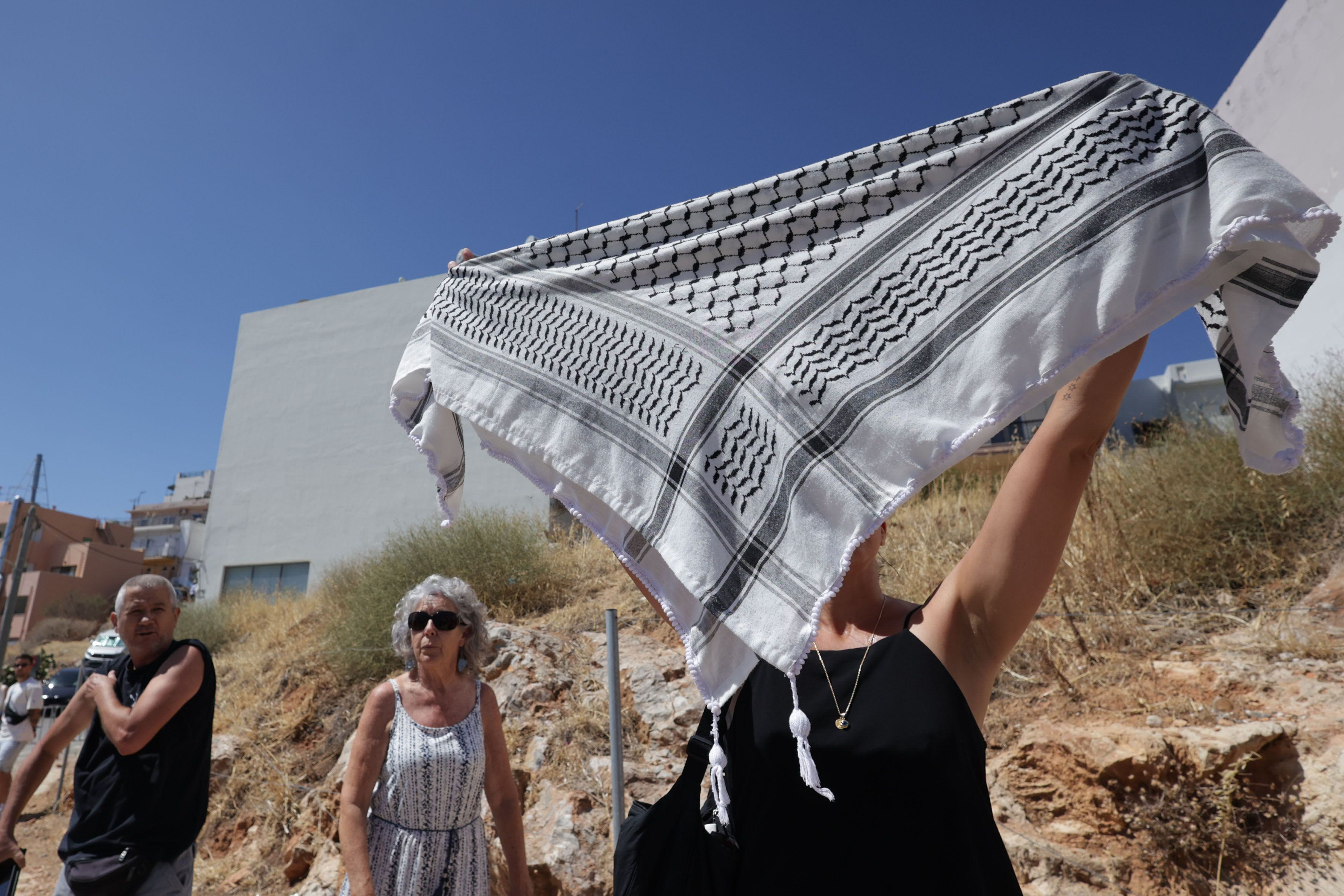 Μετά τη Σύρο και τη Ρόδο, ήρθε χθες η σειρά της Κρήτης, όπου πλήθος αλληλέγγυων κατοίκων του νησιού συγκεντρώθηκε στον Άγιο Νικόλαο, για να εκφράσει την υποστήριξή του στον παλαιστινιακό λαό και την αντίθεσή τους στην παρουσία του κρουαζιερόπλοιου “Crown Iris”, που μετέφερε εκατοντάδες Ισραηλινούς τουρίστες.