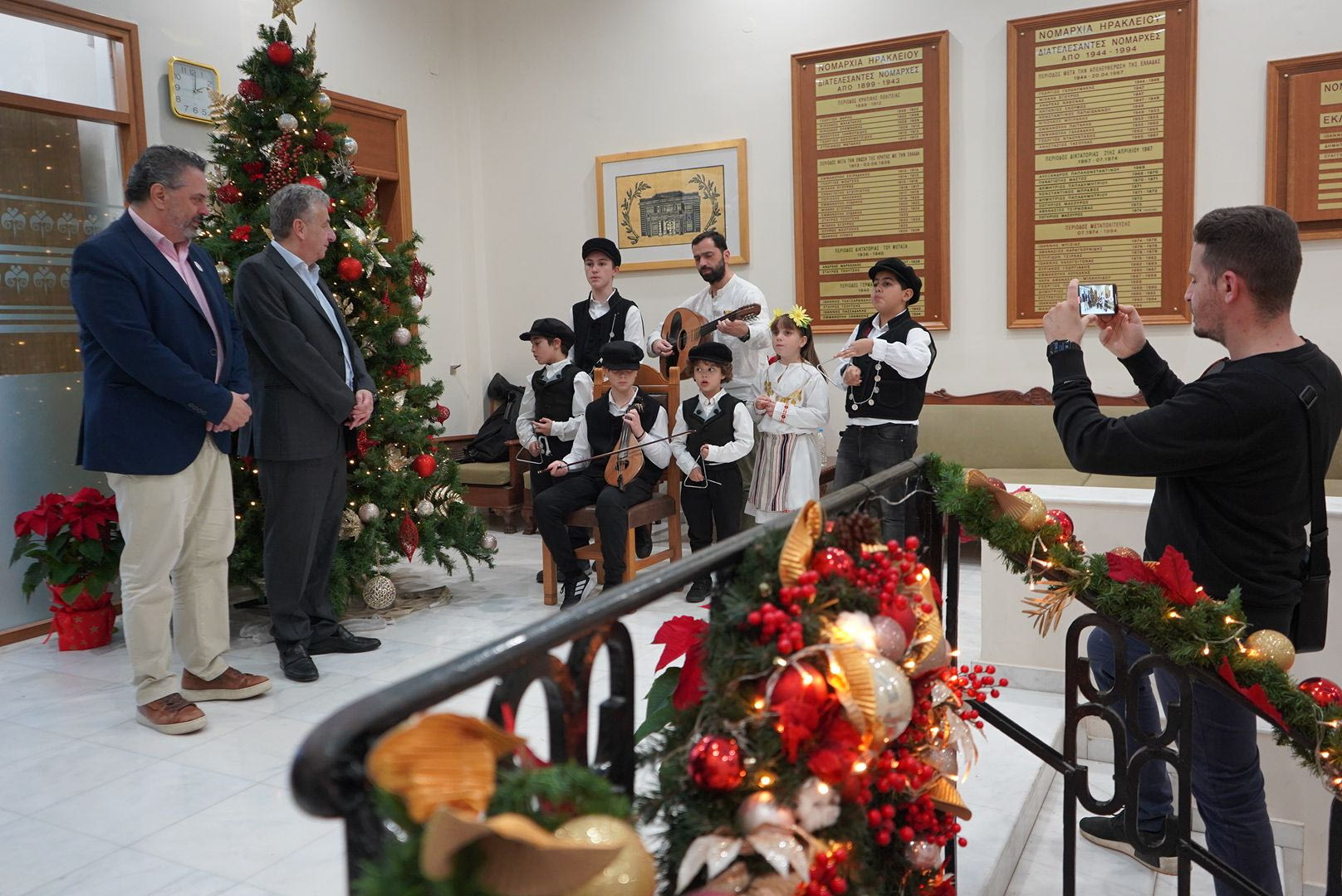 Όπως τόνισαν ο χοροδιοδάσκαλος, Γιάννης Τάσιου και ο λαουτιέρης Νίκος Μολουδάκης που συνόδευσαν τα παιδιά, ξεκινούν από την Περιφέρεια Κρήτης μια νέα δράση γνωριμίας με τις τοπικές αρχές, ψάλλοντας τα παραδοσιακά κάλαντα και ανταλλάσσοντας ευχές για τα Χριστούγεννα.