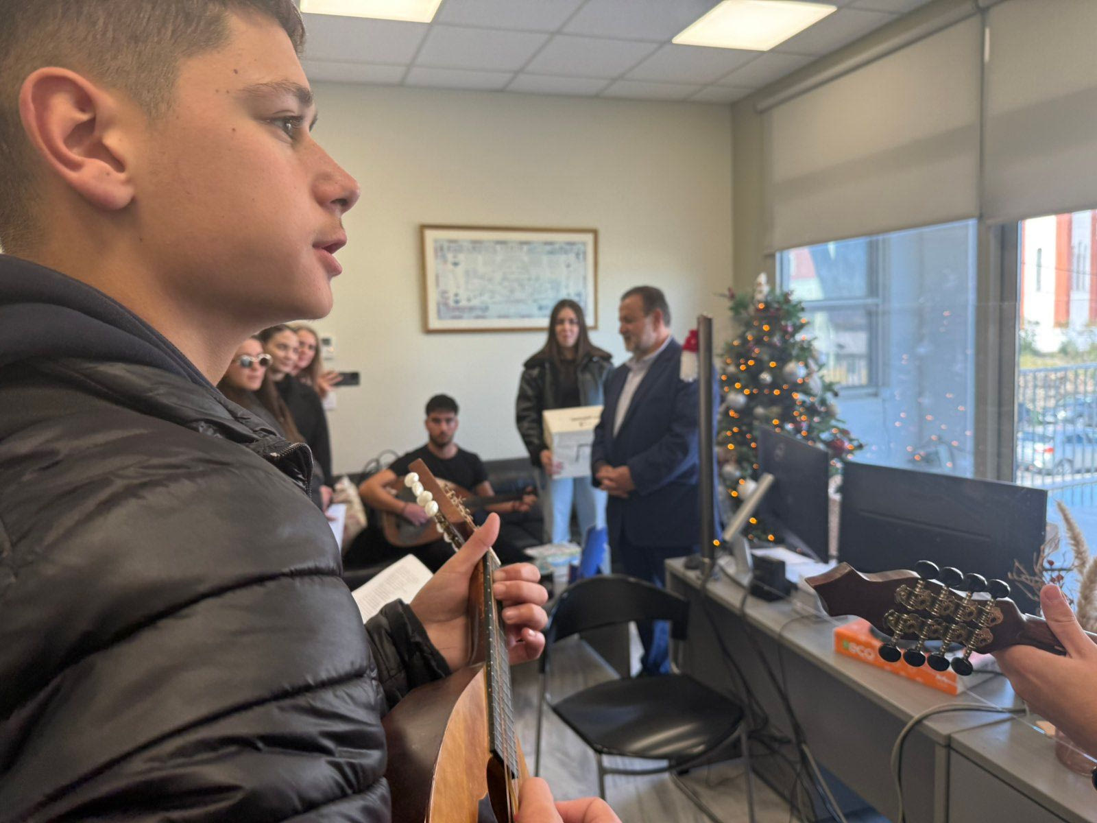 Ο Δήμαρχος, οι Αντιδήμαρχοι, οι εντεταλμένοι δημοτικοί σύμβουλοι και το προσωπικό του Δήμου, υποδέχτηκαν με ιδιαίτερη χαρά τους μαθητές και τους εκπαιδευτικούς που τους συνόδευαν, ανταλλάσσοντας θερμές ευχές για χαρούμενες γιορτές, με υγεία, πρόοδο, δημιουργικότητα και πολλές ευτυχισμένες στιγμές.