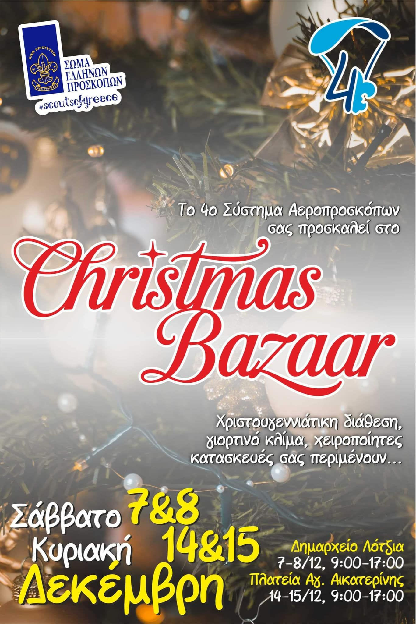 Χριστουγεννιάτικο Bazaar διοργανώνει το 4ο Σύστημα Αεροπροσκόπων Ηρακλείου στη Λότζια, στις 7 και 8 Δεκεμβρίου.