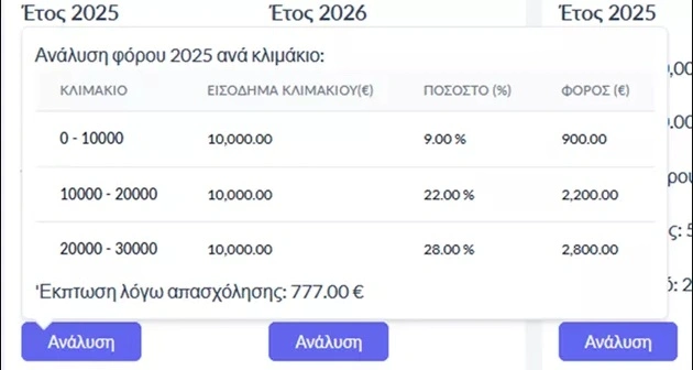 Οθόνη 3: Ανάλυση Κλιμακίων Φόρου Εισοδήματος