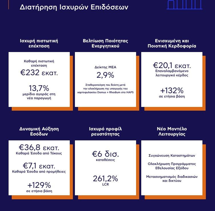 Σημαντική είναι η πρόοδος και ως προς τη βελτίωση της ποιότητας ενεργητικού, καθώς ο δείκτης μη εξυπηρετούμενων ανοιγμάτων (NPE) διαμορφώθηκε σε μόλις 2,9%, έναντι 61,5% στο πρώτο τρίμηνο του 2024, αποτυπώνοντας την πρόοδο στον εξορθολογισμό του χαρτοφυλακίου και την εμπιστοσύνη της αγοράς στις νέες πιστωτικές πολιτικές της Τράπεζας.