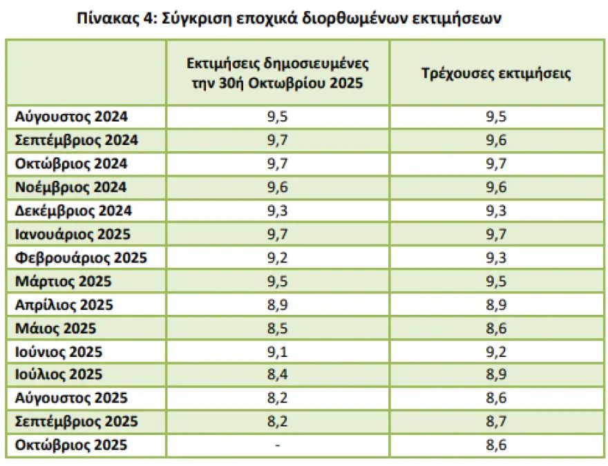 Στο 8,6% μειώθηκε το εποχικά διορθωμένο ποσοστό ανεργίας τον Οκτώβριο του 2025 έναντι 9,7% τον Οκτώβριο του 2024, και του αναθεωρημένου προς τα πάνω 8,7% τον Σεπτέμβριο του 2025, σύμφωνα με τις τις εποχικά προσαρμοσμένες εκτιμήσεις απασχόλησης και ανεργίας που δημοσιοποίησε η ΕΛΣΤΑΤ.