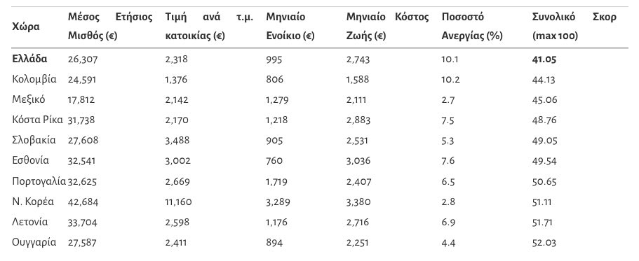 - Πορτογαλία: Με παρόμοιο μισθό (€32.625) αλλά χαμηλότερη ανεργία (6,5%), η χώρα ξεπερνά την Ελλάδα με σκορ 50,65/100.