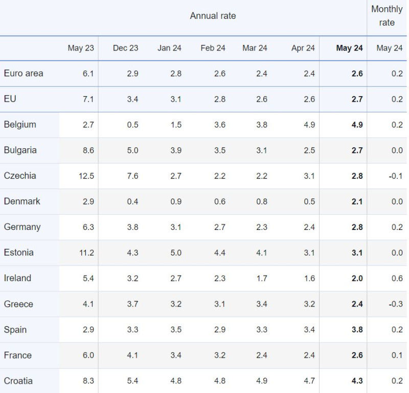 Euro area annual #inflation up to 2.6% in May 2024 https://t.co/RfWPrlrXD7 pic.twitter.com/qkNq8Xh4rR