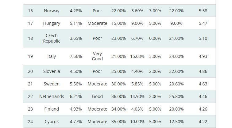 Σε προηγούμενη μελέτη της βρετανικής εταιρείας 1st Move International, η Λιθουανία εμφανιζόταν ως η κορυφαία επιλογή. Στην τρέχουσα λίστα, η βορειοευρωπαϊκή χώρα κέρδισε τη δεύτερη θέση, ακολουθούμενη στενά από την Βόρεια Μακεδονία.