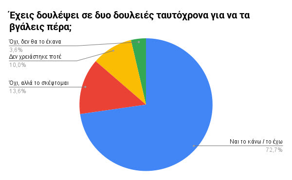 - Πάνω από τους μισούς δουλεύουν ή έχουν δουλέψει σε δύο δουλειές.
