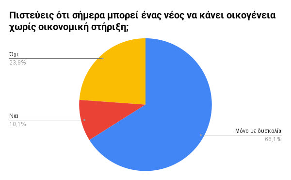 - Η πλειοψηφία θεωρεί πως η δημιουργία οικογένειας είναι εφικτή μόνο με δυσκολία ή όχι χωρίς βοήθεια.