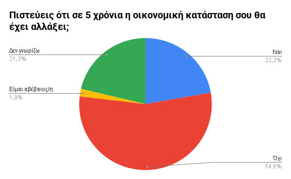 - Μερικοί πιστεύουν πως η κατάστασή τους θα βελτιωθεί στα επόμενα 5 χρόνια, άλλοι είναι αρνητικοί ή αβέβαιοι.