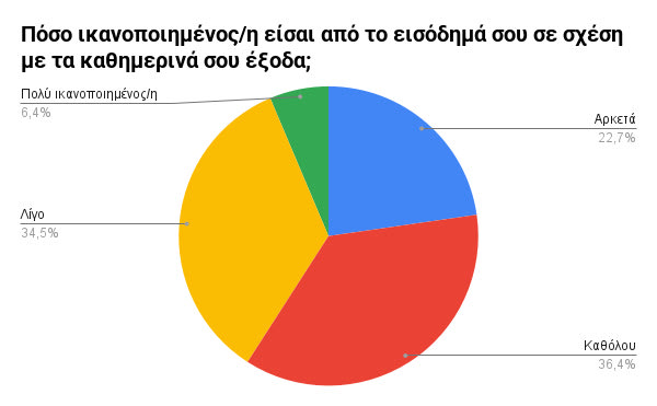 Στην ερώτηση κατά πόσο οι νέοι είναι ικανοποιημένοι από το εισόδημά τους σε σχέση με τα καθημερινά τους έξοδα: