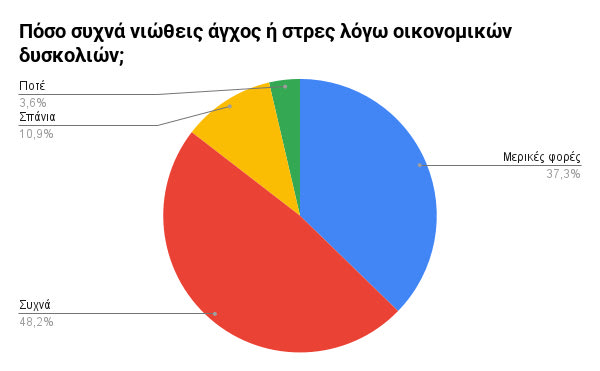 - Πάνω από το 70% των νέων απαντά πως νιώθει συχνά ή μερικές φορές άγχος λόγω οικονομικών προβλημάτων.