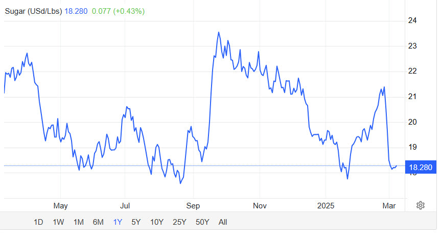 Η μεγαλύτερη αύξηση καταγράφηκε στη ζάχαρη (+6,6%), εξαιτίας ανησυχιών για μειωμένες παγκόσμιες προμήθειες το 2024/25, λόγω δυσμενών καιρικών συνθηκών στη Βραζιλία. Τα γαλακτοκομικά προϊόντα αυξήθηκαν κατά 4% λόγω αυξημένης ζήτησης εισαγωγών που υπερκάλυψε την παραγωγή. Οι τιμές των φυτικών ελαίων αυξήθηκαν κατά 2% μηνιαία και 29,1% ετησίως, κυρίως λόγω της περιορισμένης προσφοράς στη Νοτιοανατολική Ασία και της ζήτησης για βιοντίζελ.