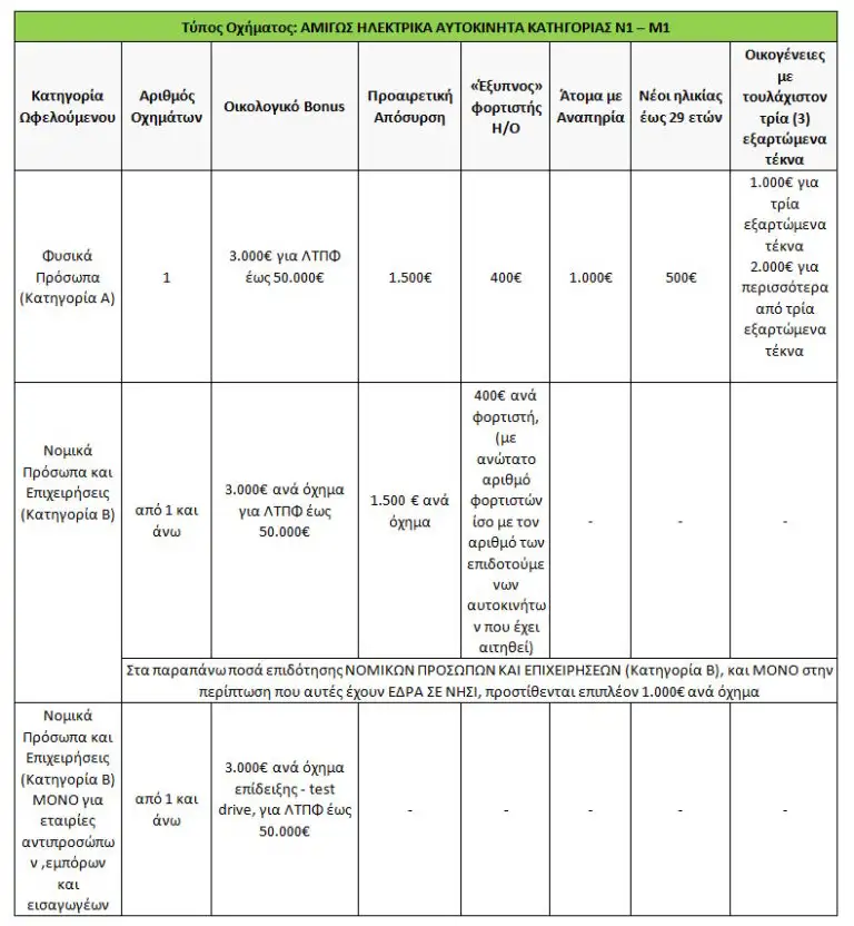Δεν δικαιούνται επιδότησης ηλεκτρικά οχήματα με λιανική τιμή προ φόρων μεγαλύτερης των 50.000 ευρώ.