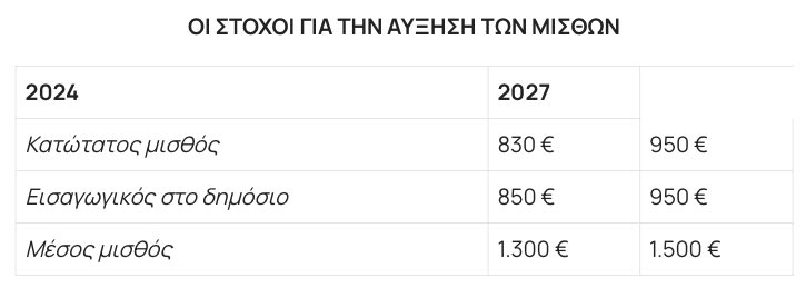 Εκτός από τα 12 μέτρα που εξειδικεύτηκαν σήμερα για την τόνωση του διαθέσιμου εισοδήματος, το οικονομικό επιτελείο προσδιόρισε ουσιαστικά τους στόχους αλλά και τα βήματα που θα γίνουν για την ενίσχυση των αποδοχών έως το 2027.