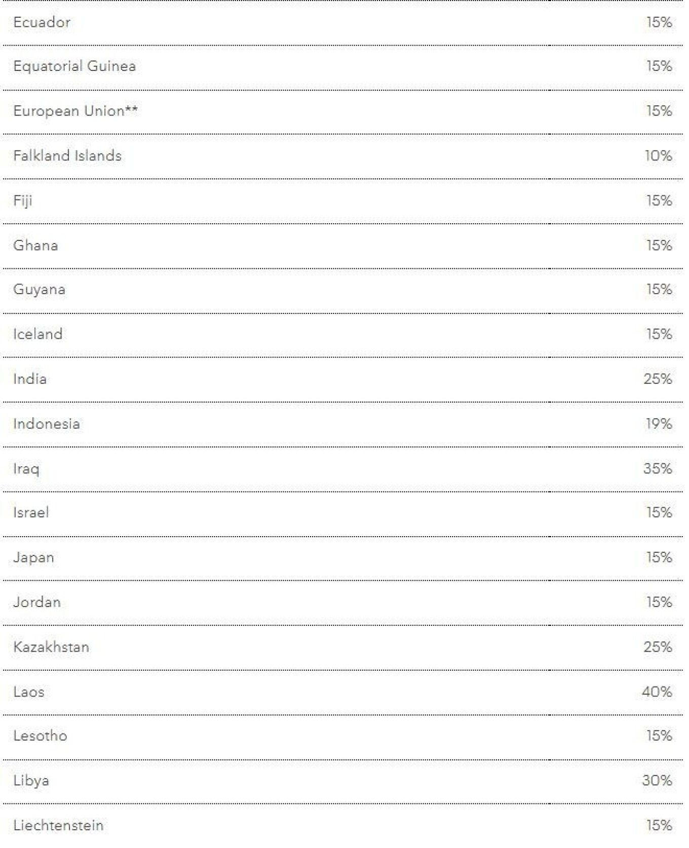 **ΣΗΜΕΙΩΣΗ: Οι δασμολογικοί συντελεστές της Ευρωπαϊκής Ένωσης έχουν καθοριστεί σε τουλάχιστον 15%. Τα εμπορεύματα που υπόκεινται επί του παρόντος σε υψηλότερους συντελεστές και ισοδύναμους συντελεστές θα συνεχίσουν να φορολογούνται με τους υψηλότερους