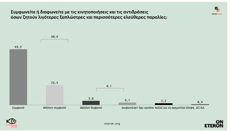 Οι ερωτηθέντες βλέπουν τόσο αρνητικά, όσο και θετικά αποτελέσματα για την φυσιογνωμία της Ελλάδας (αρνητική αξιολόγηση για το 34,5% και θετική για το 34,5%). Ωστόσο είναι σαφές ότι υπάρχει ενόχληση από την επίδραση στην ποιότητα των δημόσιων χώρων με το 88,8% να στηρίζει τις κινητοποιήσεις για ελεύθερες παραλίες και λιγότερες ξαπλώστρες.