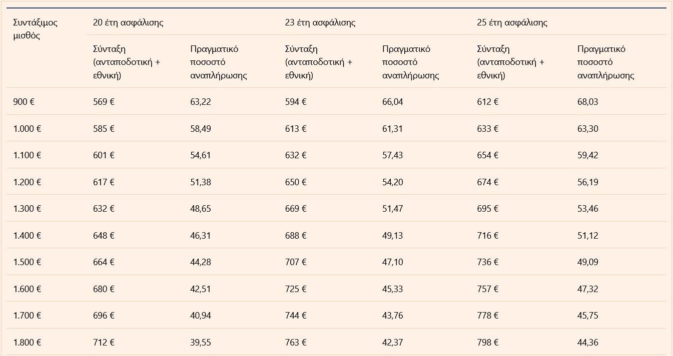 Οι συντάξεις και τα πραγματικά ποσοστά αναπλήρωσης για 20, 23 και 25 έτη ασφάλισης