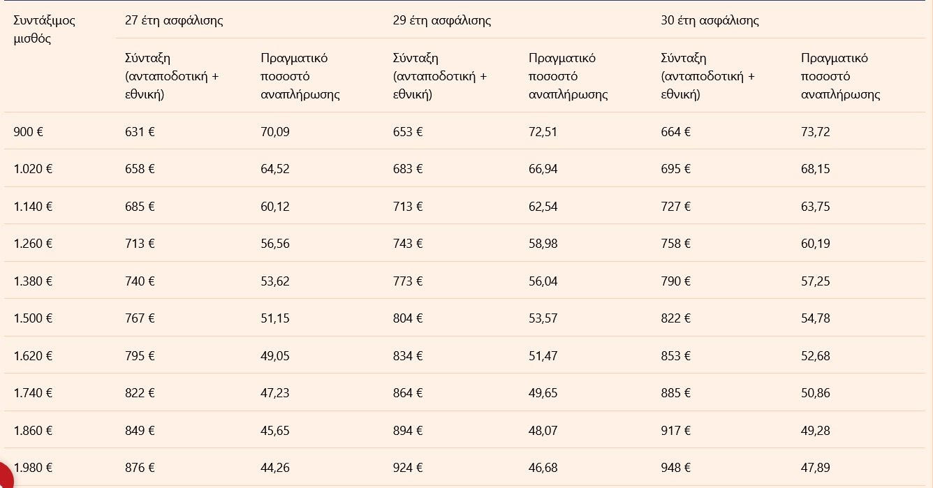 Οι συντάξεις και τα πραγματικά ποσοστά αναπλήρωσης για 27, 29 και 30 έτη ασφάλισης