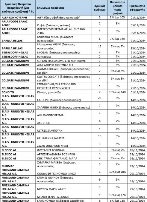 Η ανανεωμένη λίστα με τους 362 κωδικούς προϊόντων που έχουν ενταχθεί ως τώρα στην πρωτοβουλία μείωσης τιμών στα σούπερ μάρκετ: