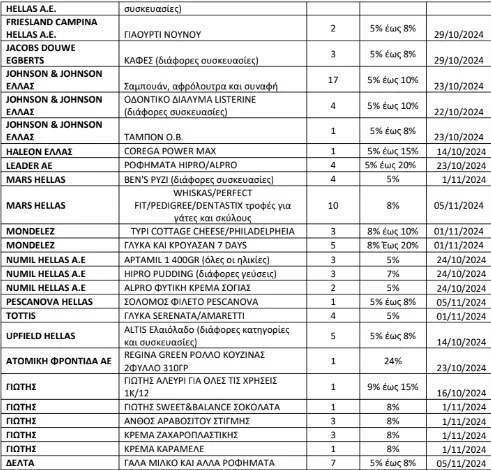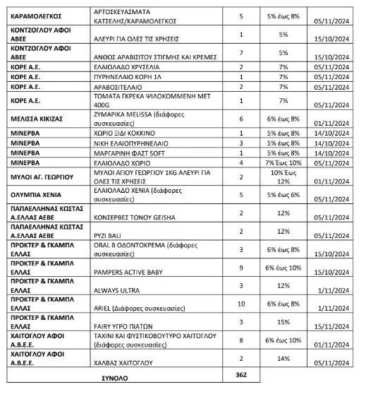 Η ανανεωμένη λίστα περιλαμβάνει 362 κωδικούς προϊόντων που έχουν ενταχθεί, έως τώρα, στην πρωτοβουλία μείωσης τιμών στα σούπερ μάρκετ και οι μειώσεις διαμορφώνονται από 5% έως 24%.
