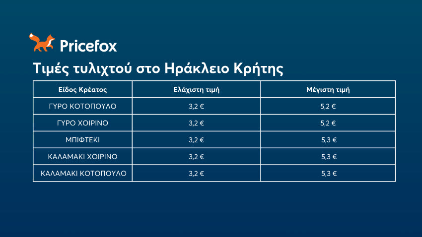 Έτσι, με τις τιμές του τυλιχτού να ξεκινάνε από 3,20€ και φτάνοντας στα 5,30€, στην Κρήτη συναντάμε τις μεγαλύτερες αποκλίσεις μεταξύ του φθηνότερου και του ακριβότερου τυλιχτού της χώρας.