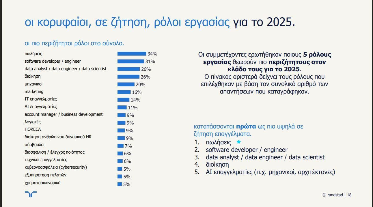 Τα παραπάνω προκύπτουν από την έρευνα της Randstad «Τάσεις στο ΗR και τους μισθούς το 2025», μέσω συνεντεύξεων με αρμόδια στελέχη επιχειρήσεων.