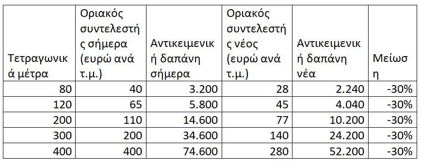 - Μειώνονται οι ανωτέρω συντελεστές σε 30% και 58% αντίστοιχα έτσι ώστε σε αυτές τις περιοχές η αντικειμενική δαπάνη να μειωθεί κατά 35%: