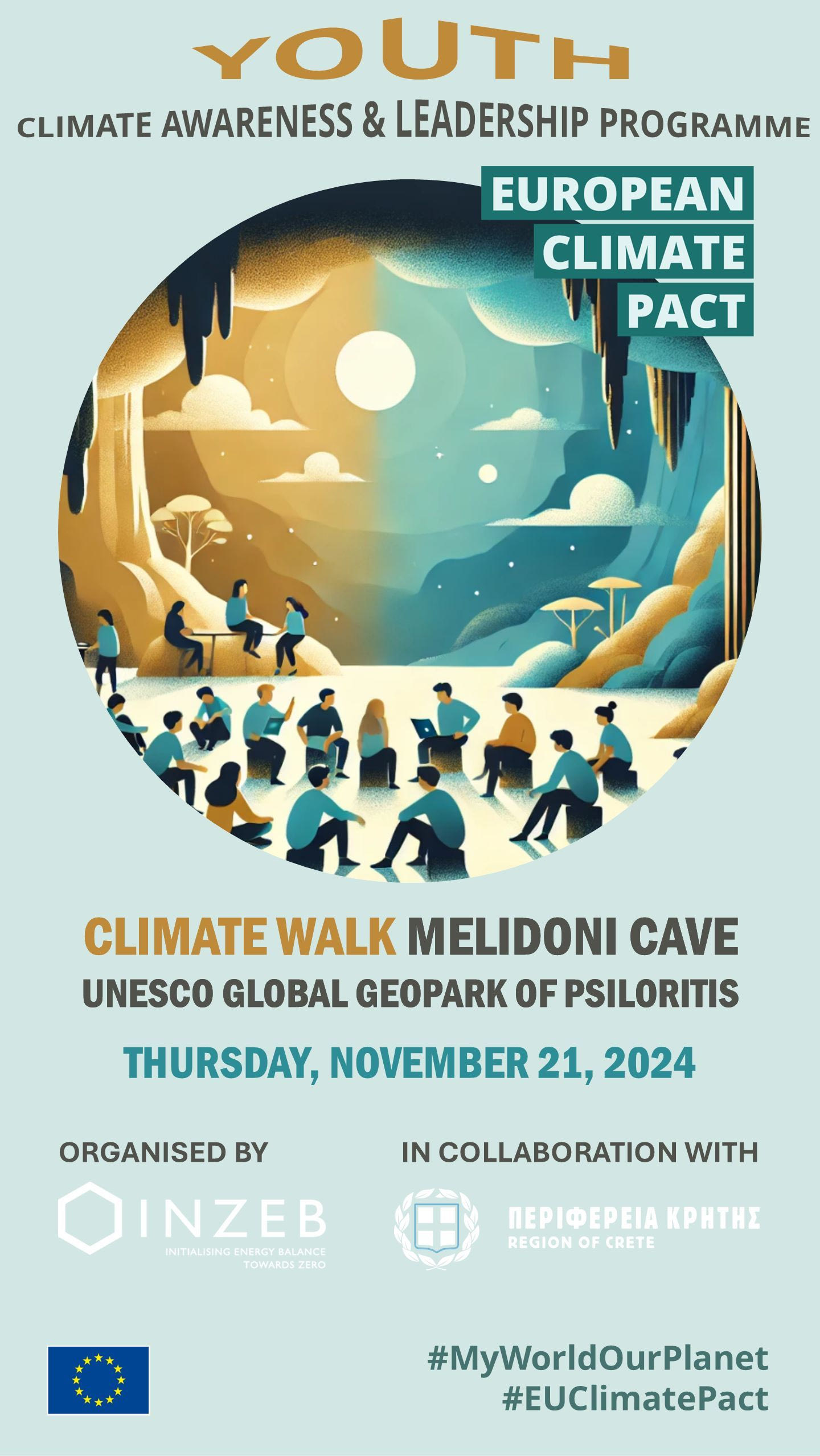 Οι δράσεις, οι οποίες συνδιοργανώνονται από τον Οργανισμό ΙΝΖΕΒ, Συντονιστή για το ΕυρωπαϊκόΣύμφωνο για το Κλίμα στην Ελλάδα, και την Περιφέρεια Κρήτης, περιλαμβάνουν δύο Κλιματικούς Περιπάτους σε Γεώτοπους της UNESCO, και συγκεκριμένα στο Σπήλαιο Μελιδονίου του Παγκόσμιου Γεωπάρκου Ψηλορείτη, στο Ρέθυμνο και στο Φαράγγι της Κάτω Ζάκρου του Παγκόσμιου Γεωπάρκου Σητείας, καθώς και δύο Κλιματικές Συζητήσεις Νέων, στο Ηράκλειο και στα Χανιά.