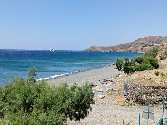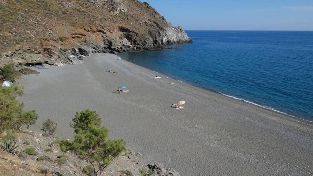 Η παραλία του, με ψιλό βότσαλο και πεντακάθαρα, τιρκουάζ νερά, είναι σχεδόν ανέγγιχτη. Δεν θα βρείτε ξαπλώστρες ούτε beach bar. Αντί γι’ αυτά, θα απολαύσετε τη φυσική σκιά από τα αλμυρίκια, τη γαλήνη και τον ήχο των κυμάτων.