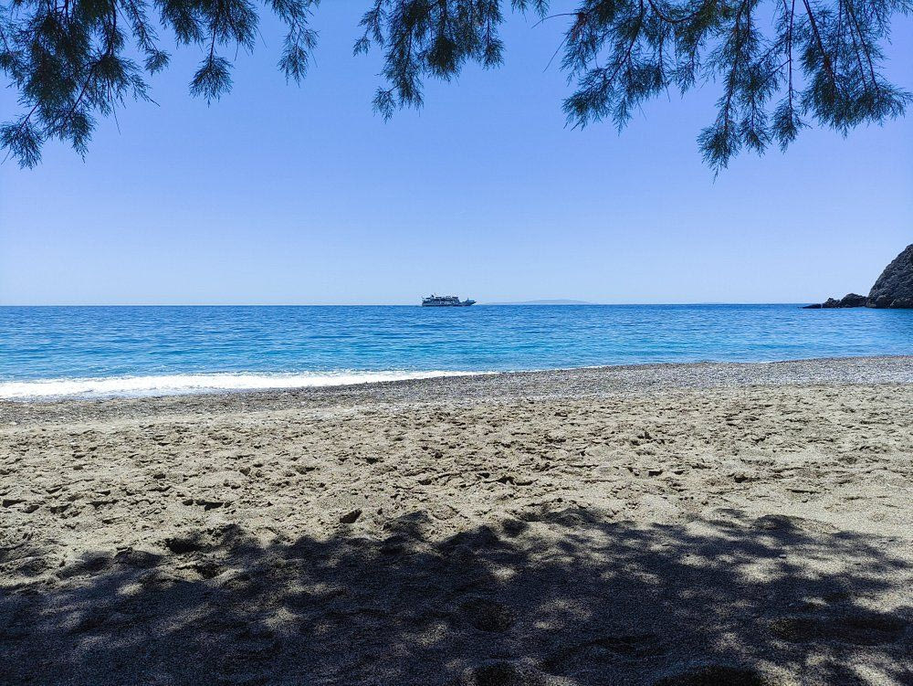 Η πρόσβαση δεν είναι για όλους: το μονοπάτι σκαρφαλώνει στην πλαγιά και θέλει γερά παπούτσια, ενώ η εναλλακτική είναι ένα σύντομο ταξίδι με καΐκι από τα κοντινά χωριά. Αυτή η μικρή δυσκολία είναι που κρατά το τοπίο σχεδόν ανέγγιχτο. Όσοι φτάνουν, βρίσκουν μπροστά τους μια στενή λωρίδα με βότσαλο που αστράφτει στον ήλιο και νερά που παραμένουν αναπάντεχα δροσερά ακόμη και τον Αύγουστο.