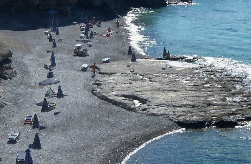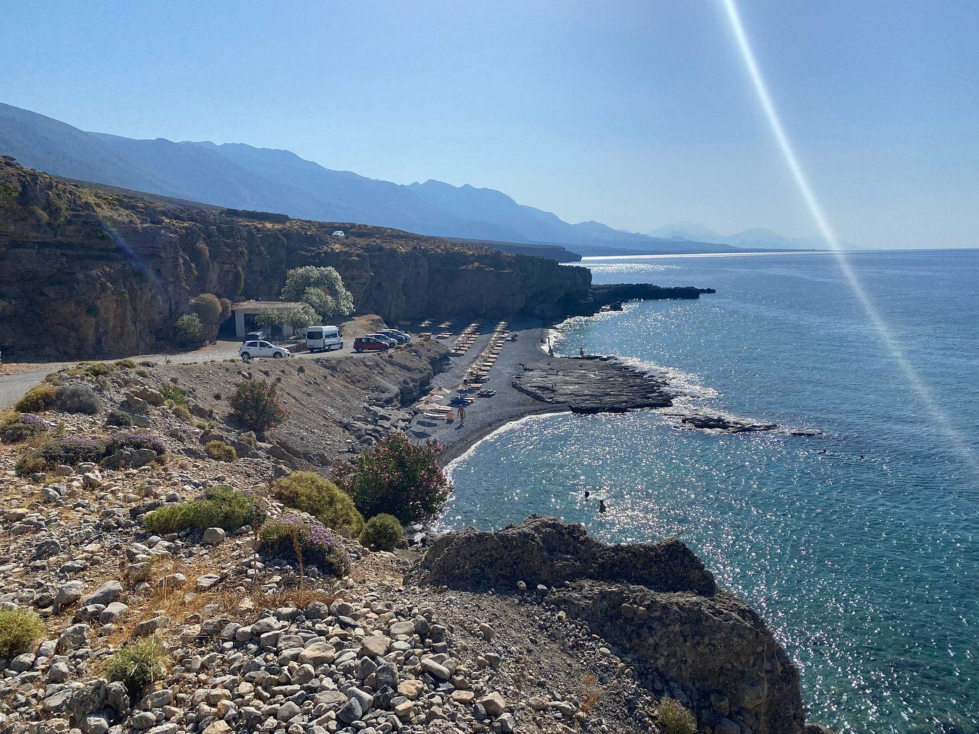 Η παραλία έχει βότσαλο και κατά τόπους βράχια και δεν είναι ανοιχτή στους ανέμους. Είναι γενικά απομονωμένη, παρά το γεγονός ότι η πρόσβαση με αυτοκίνητο ή περπάτημα από την κοντινή Χώρα Σφακίων είναι εύκολη.