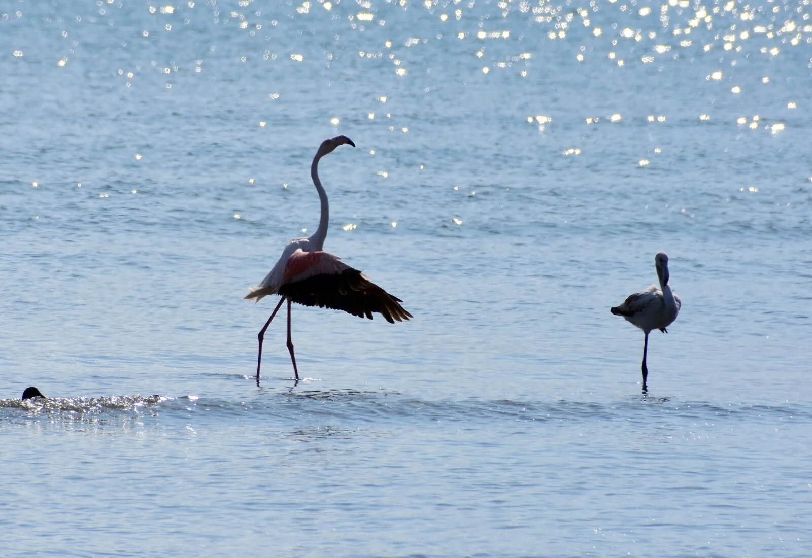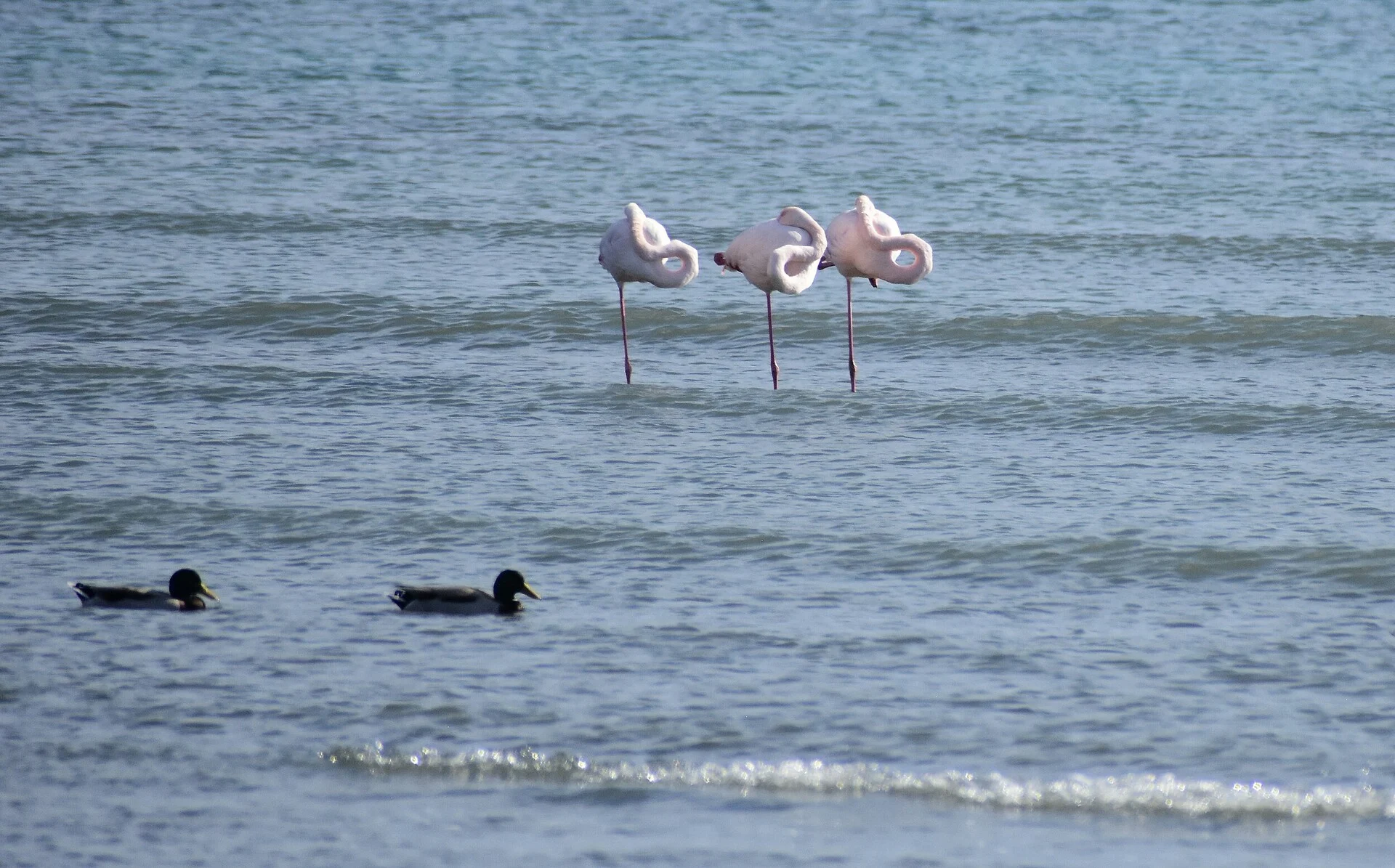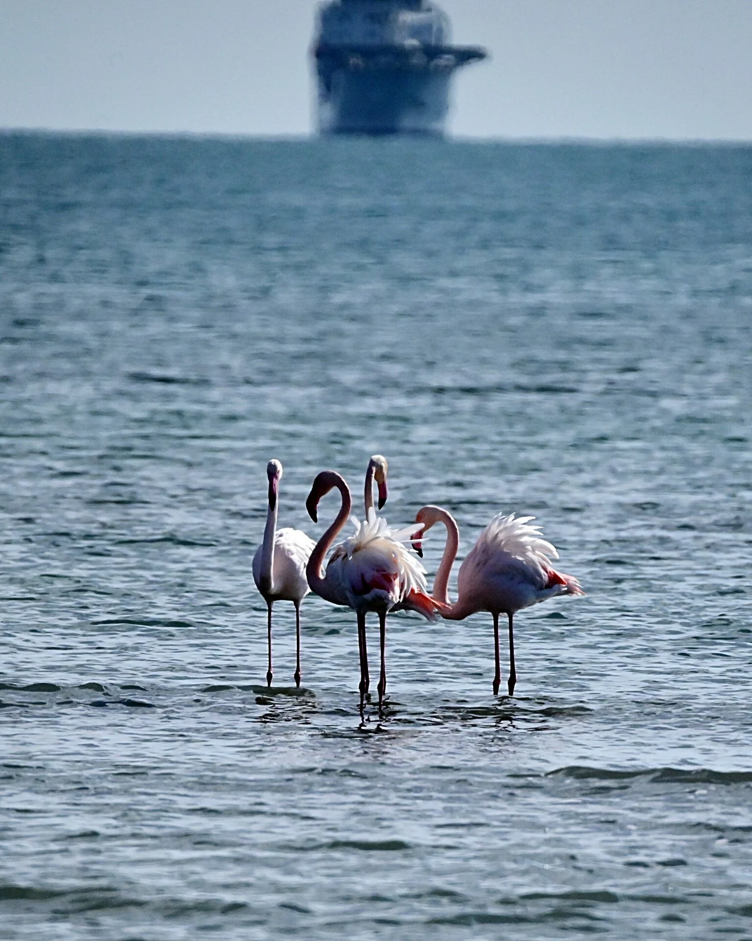 Εντυπωσιάζουν οι φωτογραφίες με τα φλαμίνγκο που κάνουν βόλτα και «παραθερίζουν» στην παραλία στο Ναύπλιο.