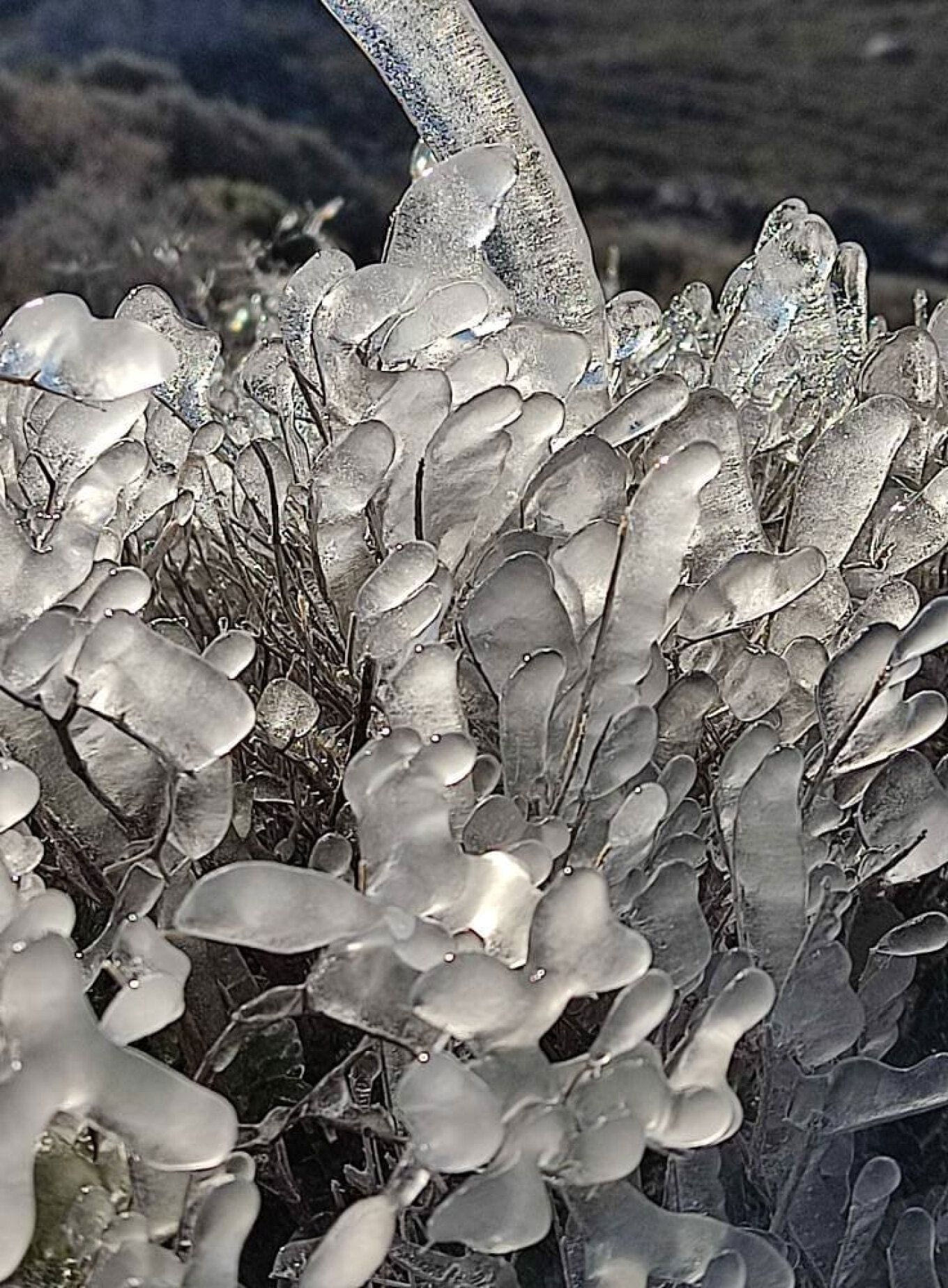 Μια από τις πιο εντυπωσιακές εικόνες δημιουργήθηκε στα Στεγνά, στην περιοχή του Αρχαγγέλου, όπου τα λουλούδια «πάγωσαν» από το ψύχος. Δείτε φωτογραφίες: