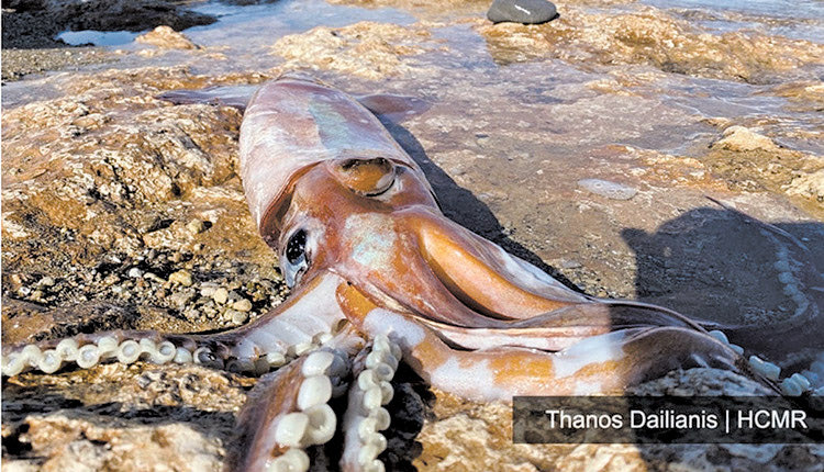 Σπάνιο καλαμάρι του γένους Todarodes κατέληξε στις ακτές του Ηρακλείου, μετά την αναπαραγωγή του!