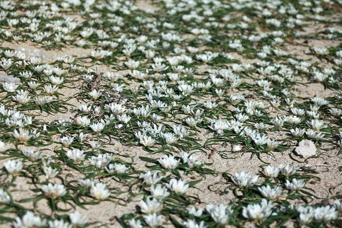 Το Androcymbium rechingeri, όπως είναι η επιστημονική ονομασία του φυτού που βλέπετε στις φωτογραφίες, φύεται σε μικρές περιοχές στις παραλίες της Δυτικής Κρήτης (Νησίδα Ήμερη Γραμβούσα, Φαλάσσαρνα, Ελαφονήσι) και πουθενά αλλού στον πλανήτη. Το Δεκέμβρη βρίσκεται σε ανθοφορία και αν είστε τυχεροί μπορείτε να το συναντήσετε σε συγκεκριμένα σημεία στη δυτική Κρήτη.