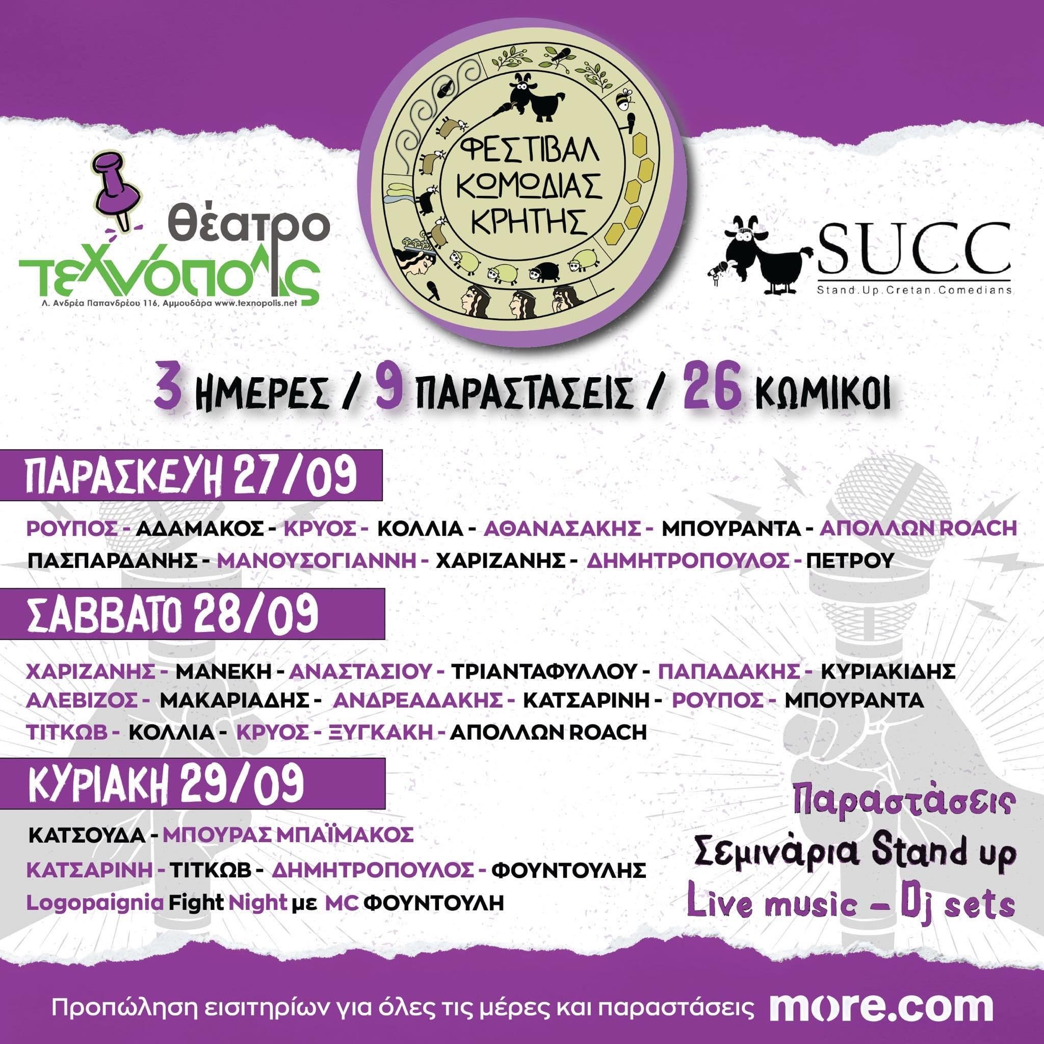 Από τις 27 Σεπτεμβρίου έως και τις 29 Σεπτεμβρίου θα πραγματοποιηθεί το 4ο Φεστιβάλ Κωμωδίας Κρήτης στο Τεχνόπολις.