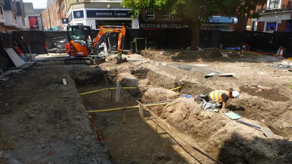 Οι ανακαλύψεις έγιναν κατά τη διάρκεια ανασκαφικών εργασιών στην πλατεία του Αγίου Νικολάου (St Nicholas Square) στο Κόλτσεστερ. Φωτογραφία: Colchester Archaeological Trust