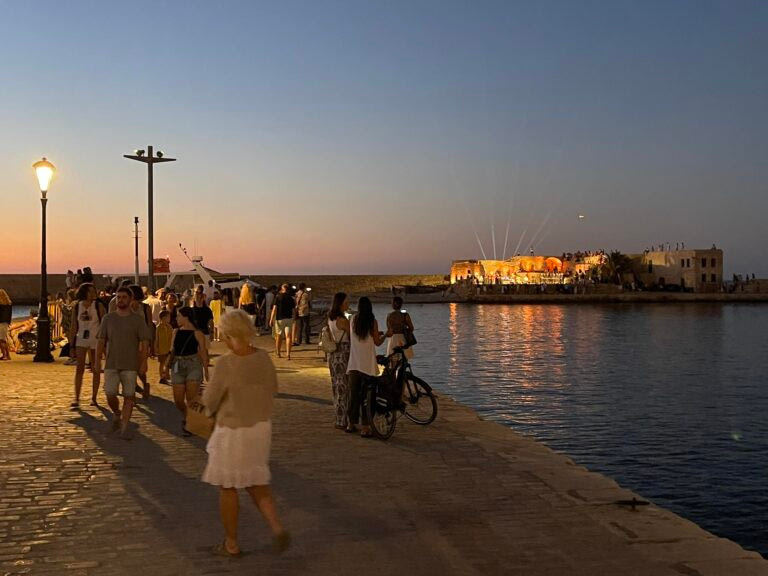 Σε μία ειδυλλιακή τοποθεσία, στη μέση του λιμενοβραχίονα στο εκκλησάκι του Αγίου Νικολάου, με θέα τον Φάρο και το Ενετικό λιμάνι των Χανίων, οι εκατοντάδες επισκέπτες και περιηγητές παρακολουθούσαν μαγεμένοι από την απέναντι μεριά του λιμανιού τη συναυλία και απόλαυσαν το καλλιτεχνικό πάντρεμα, βυζαντινής και κρητικής μουσικής.
