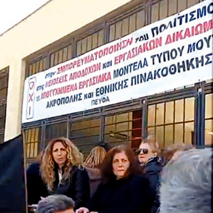 Σ’ ό,τι αφορά την τύχη των εργαζομένων, τα έσοδα και τ’αρχαία τελείωσε το κράτος». Δεν έχουμε κάνει ούτε μια κινητοποιηση για μισθολογικά θέματα. Κινητοποιούμαστε όμως για να σώσουμε την αξιοπρέπεια μας και να μείνει στην ιστορία ότι η δική μας η γενιά πάλεψε γι’ αυτά».