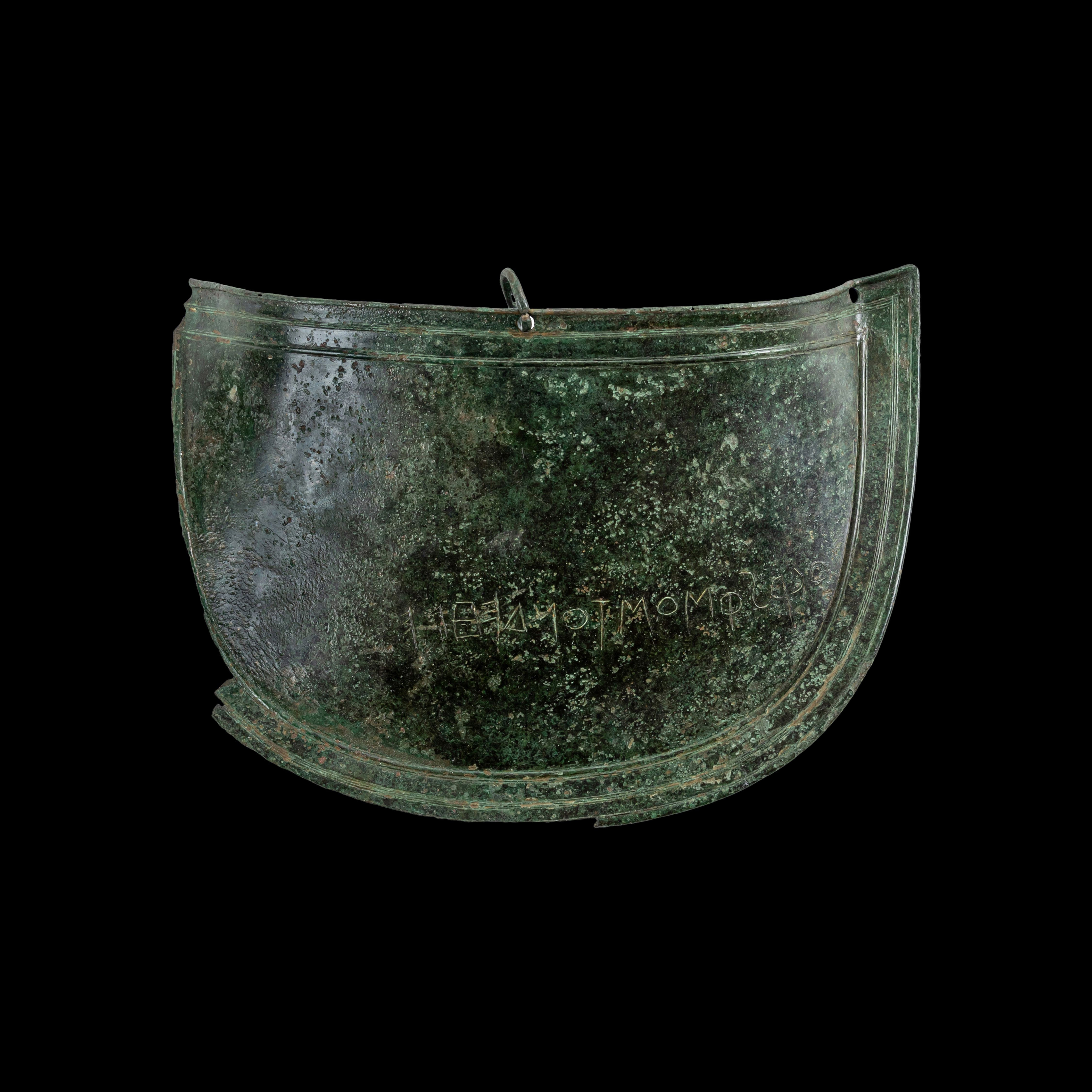 «Ο Φροίξος τον άρπαξε ετούτο» — Αμυντική εξάρτυση από χαλκό με χαραγμένη επιγραφή, λάφυρο μάχης που αφιερώθηκε σε ιερό. Ίχνος μιας προσωπικής νίκης. Αφρατί., τέλη του 7ου αι. π.Χ.