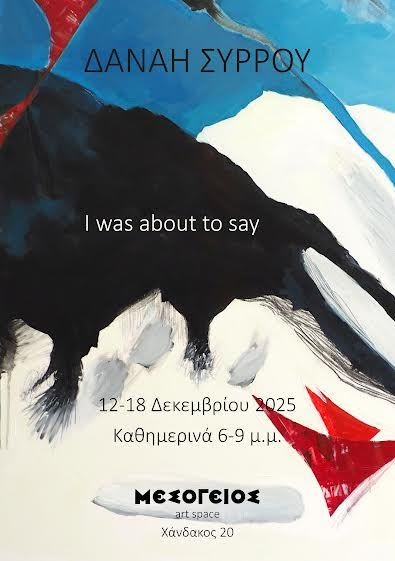 Η έκθεση με τίτλο “I was about to say” της ίδιας, ανοίγει σήμερα, Παρασκευή 12 Δεκεμβρίου, στις 7 το απόγευμα, στον γνώριμο χώρο της οδού Χάνδακος 20, με μια σειρά έργων των τελευταίων 3 ετών.