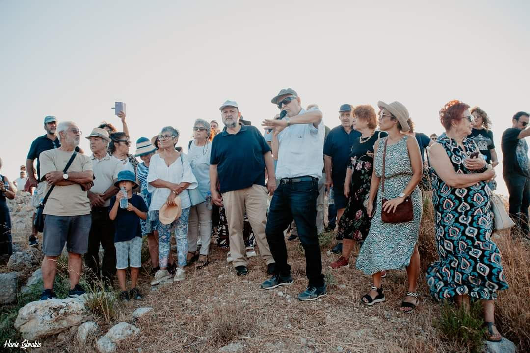 “Το Σπήλαιο είναι από τα σημαντικότερα της μινωικής Κρήτης και χρέος όλων μας είναι η ανάδειξη του αρχαιολογικού χώρου του ευρύτερου λόφου του Προφήτη Ηλία”, ανέφερε ο Δήμαρχος Μινώα Πεδιάδας Βασίλης Κεγκέρογλου κατά τη ξενάγηση στις Αρχαιότητες του Αρκαλοχωρίου από την κ. Καλλιόπη Γκαλανάκη με την υπέροχη αυτή διαδρομή πολιτισμού να ολοκληρώνεται με ένα μοναδικό Αφιέρωμα από την Περιφέρεια Κρήτης και το Δήμο Μινώα Πεδιάδας στη μνήμη του Μίκη Θεοδωράκη, με τη συναυλία της Ανεξάρτητης Λαϊκής Ορχήστρας “Μίκης Θεοδωράκης” που “ταξίδεψε” το κοινό με τις ουράνιες μελωδίες και τη γνήσια Μουσική του Μίκη Θεοδωράκη.