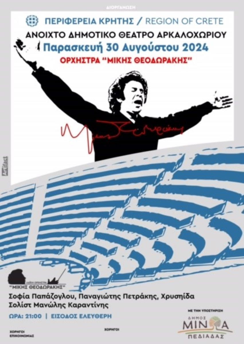 Η Περιφέρεια Κρήτης, ο Δήμος Χανίων και ο Δήμος Μινώα Πεδιάδας τιμούν τον Μίκη Θεοδωράκη με δυο συναυλίες της Ανεξάρτητης Λαϊκής Ορχήστρας “Μίκης Θεοδωράκης”.