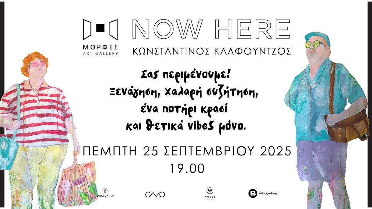 Η ΛRT Gallery Μορφές στην παλιά πόλη του Ρεθύμνου διοργανώνει στις 19:00 μια βραδιά ξενάγησης και συζήτησης για την ατομική έκθεση σύγχρονης τέχνης “Now Here” του εικαστικού Κωνσταντίνου Καλφούντζου. Η έκθεση, επιμελημένη από τον Ηλία Ηλιάκη, συνδυάζει ζωγραφικά έργα με διαδραστικά στοιχεία: ορισμένα έργα φέρουν κώδικες QR που οδηγούν σε μουσική ή βίντεο, επομένως οι διοργανωτές συστήνουν διακριτική παρακολούθηση . Η έκθεση θα παραμείνει ανοιχτή μέχρι το Σάββατο 4 Οκτωβρίου 2025 και φιλοδοξεί να προκαλέσει διάλογο για τη σχέση του «εδώ» και του «πουθενά». Η είσοδος είναι ελεύθερη.