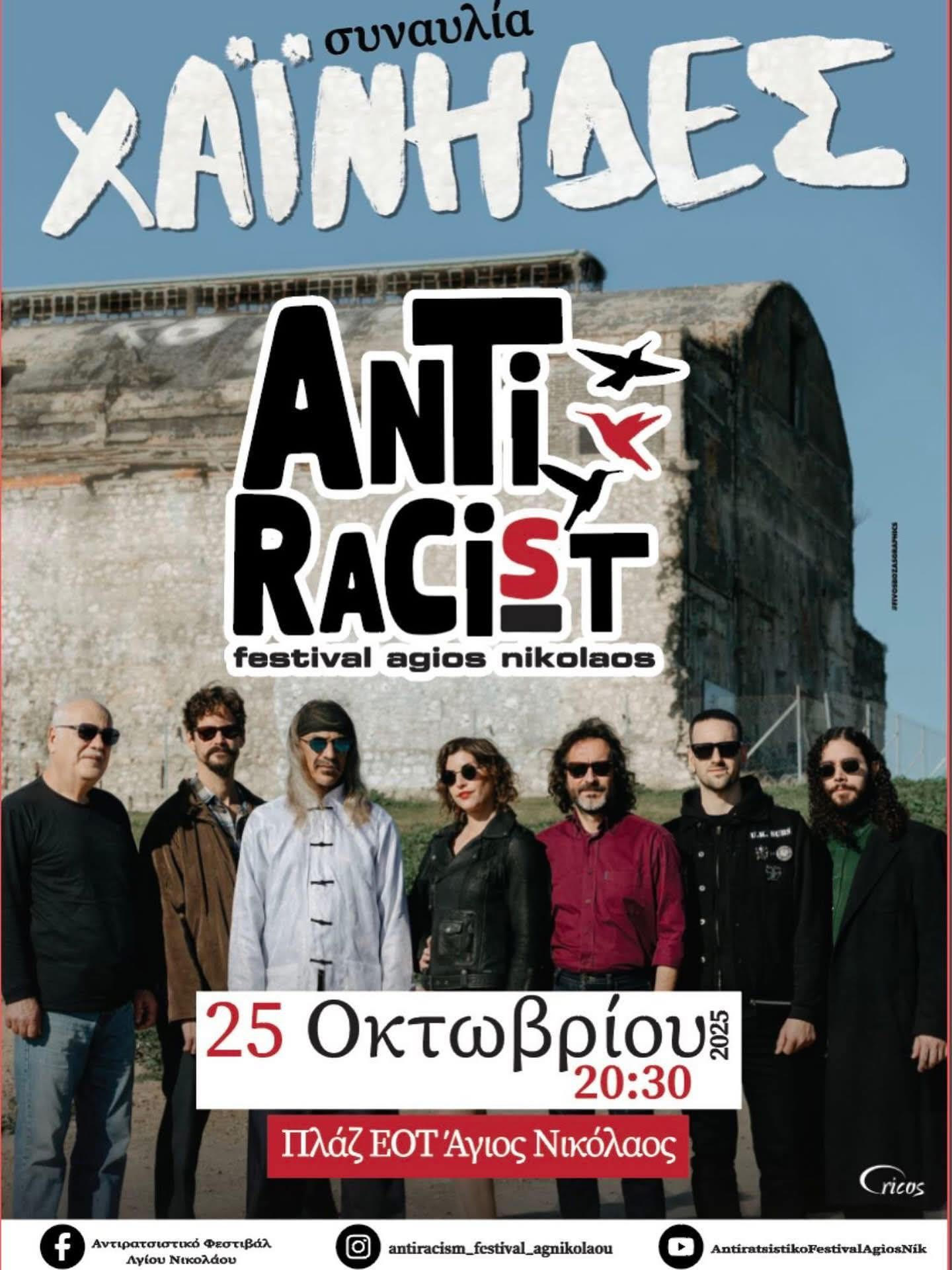 Οι Χαΐνηδες θα εμφανιστούν στο 3ο Αντιρατσιστικό Φεστιβάλ Αγίου Νικολάου, στις 8:30 το βράδυ, στην Πλαζ ΕΟΤ της πόλης.